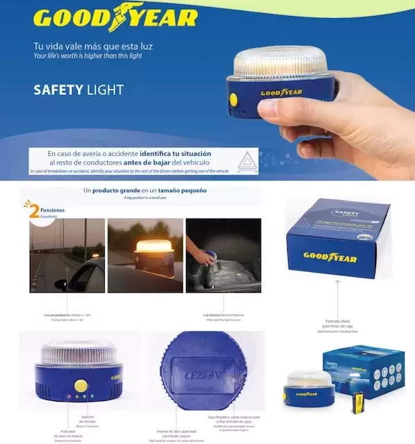 Feu de signalisation d'urgence GoodYear V16 pour caravanes, camping-cars, camping-cars et 4x4 terrestres.