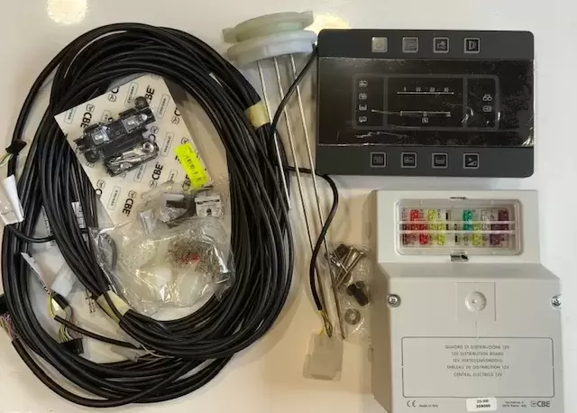 Kit centrale CBE PC180 avec accessoires pour camping-cars et caravanes.