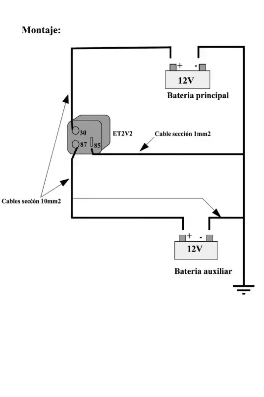 * Función protección batería principal. El relé separa la segunda batería si la principal está a menos de 12V