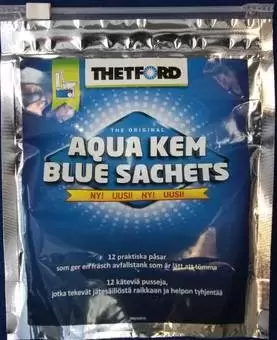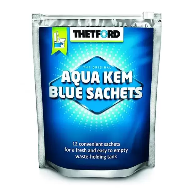 Sachets Aqua Kem. Sachets remplis de poudre pour un usage quotidien. Les sachets Aqua Kem sont des sachets qui se dissolvent complètement dans l'eau. Ainsi, la dose correcte peut être appliquée facilement et économiquement. Placez simplement les sachets directement dans le réservoir à déchets avec 2 litres d'eau, et ils se dissoudront rapidement. Pour une utilisation normale, une dose suffit jusqu'à quatre à cinq jours.