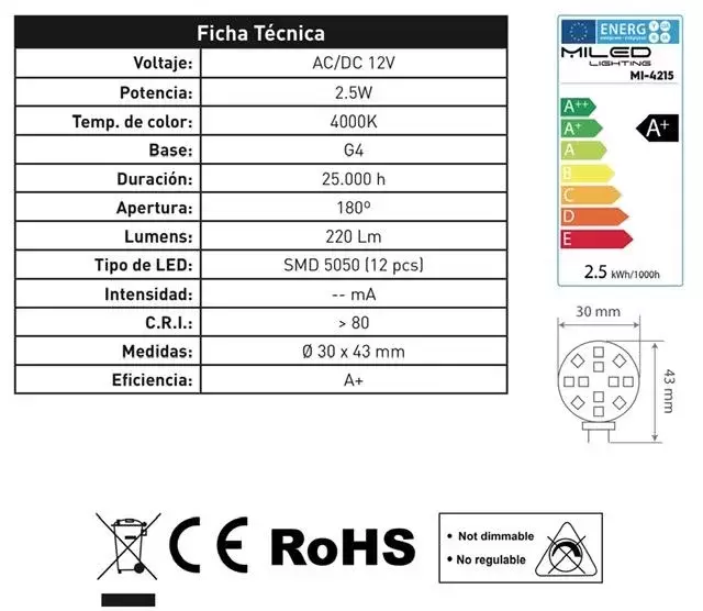 Ampoule Led 220 lumens 4000K lumière neutre pour caravanes, camping-cars et camping-car. - Réf.2-MI-4215