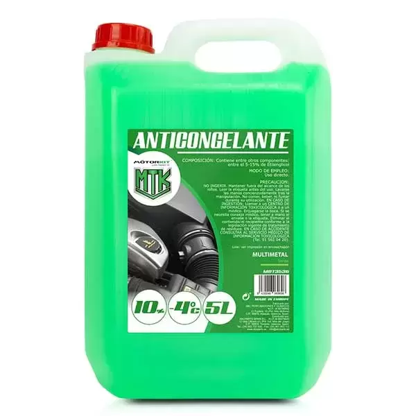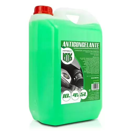 Antigel de liquide de refroidissement vert 10% -4ºC en bouteilles de 5 litres. - Réf MOT3536