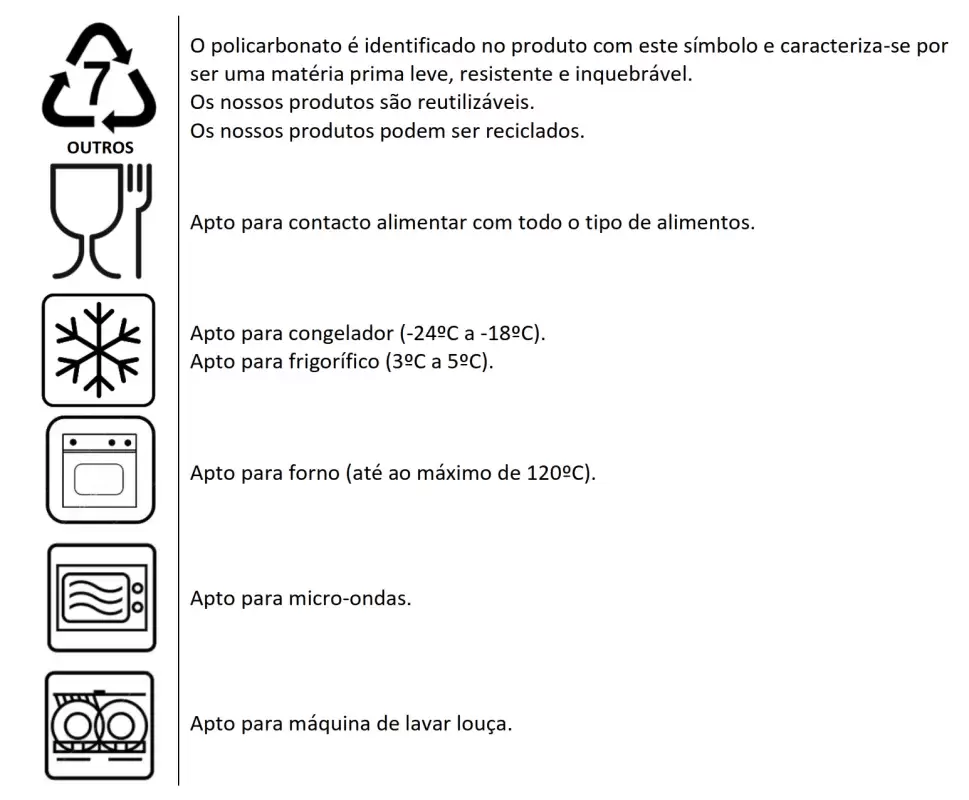 Convient au congélateur et au réfrigérateur, au four (jusqu'à 120ºC), au lave-vaisselle et au micro-ondes.