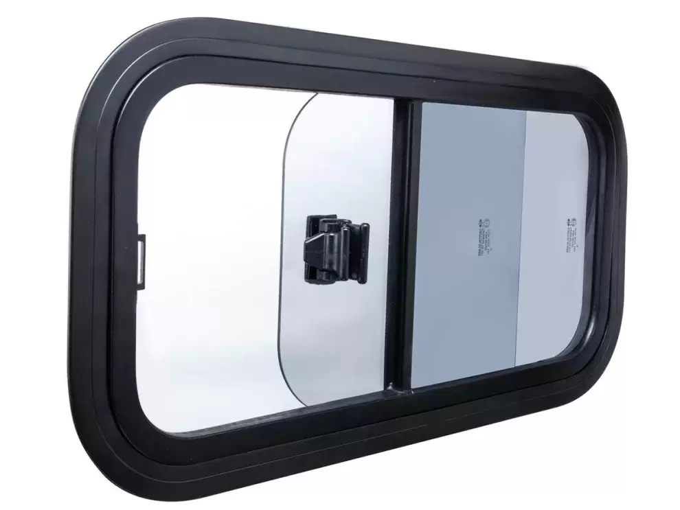 Fenêtre coulissante 400X300 avec cadre noir, verre teinté gris, verre de sécurité norme européenne 43R
