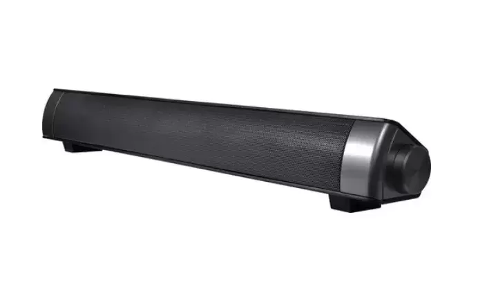 La barre de son est alimentée via le port USB du téléviseur et les signaux audio sont transmis via la prise casque. Il se fixe au bas du téléviseur à l'aide du support fourni.