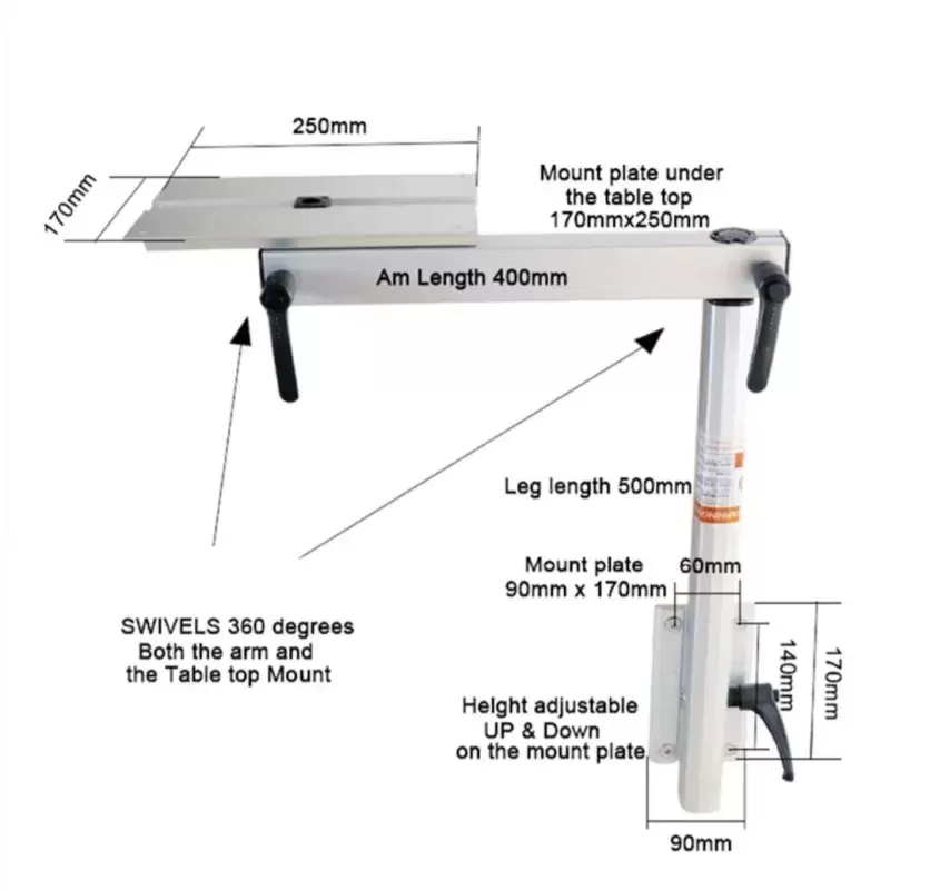 Base de table rotative à 360º pour l'installation latérale de caravanes, camping-cars et camping-cars.