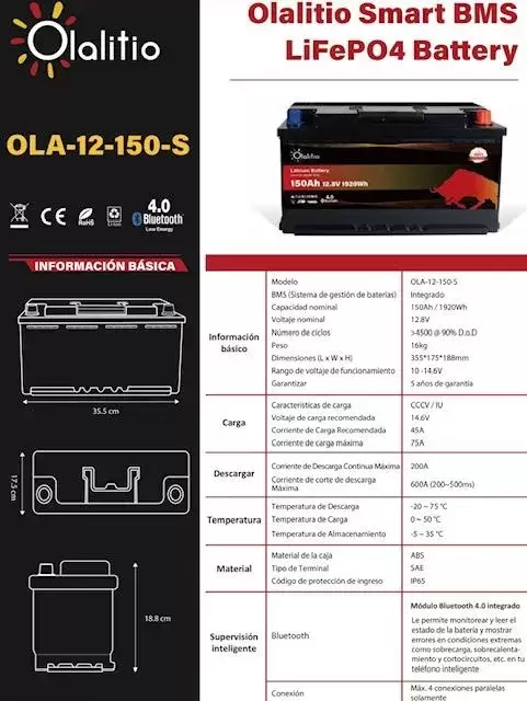 OLA-12-150-S-Datasheet- Olalitio-Lihtium-Battery-12V150Ah sous siège-ES
