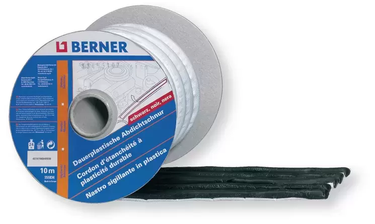 BERNER Cordon butyle rond NOIR 10mm en rouleau de 10 mètres, pour tous types d'installations.