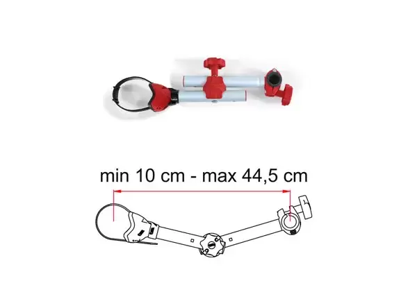 Support à vélo avec un joint intermédiaire qui permet de le placer à une distance minimale de 10 cm et une distance maximale de 44,5 cm.