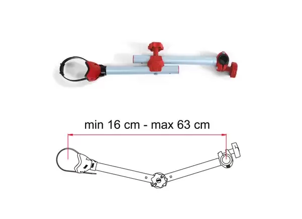 Bike Block Pro D2 avec un joint intermédiaire qui permet un ancrage avec une distance minimale de 16 cm et une distance maximale de 63 cm.