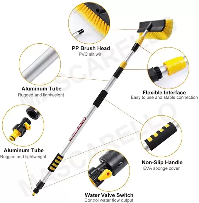 Brosse de nettoyage télescopique de haute qualité avec manche, pour le lavage des véhicules.