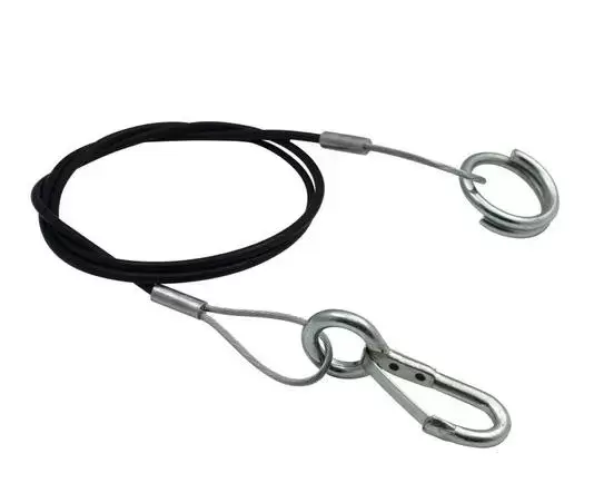 Câble de sécurité pour boules d'attelage pour remorques et caravanes en acier recouvert d'une gaine plastique, avec anneau et mousqueton pour une installation facile de 110cm et 102kg.