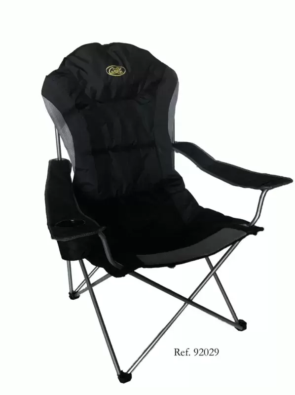 Chaise aux dimensions généreuses avec une structure métallique très résistante et une toile 100% Polyester (600D) de haute qualité et des sangles de renfort, elle possède une poche avec une tête zippée, un logement thermolaqué pour déposer un verre ou une canette de boisson et elle se range dans sac de transport une fois plié .