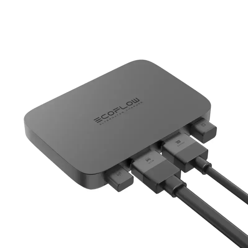 Avec le chargeur alternateur EcoFlow 800W, vous pouvez charger 8 fois plus rapidement qu'avec les prises de courant auxiliaires traditionnelles du véhicule, simplement en utilisant l'excès d'énergie généré par votre véhicule. Le chargeur utilise un convertisseur CC-CC intégré pour rétablir l'alimentation de votre centrale électrique EcoFlow pendant que vous conduisez.