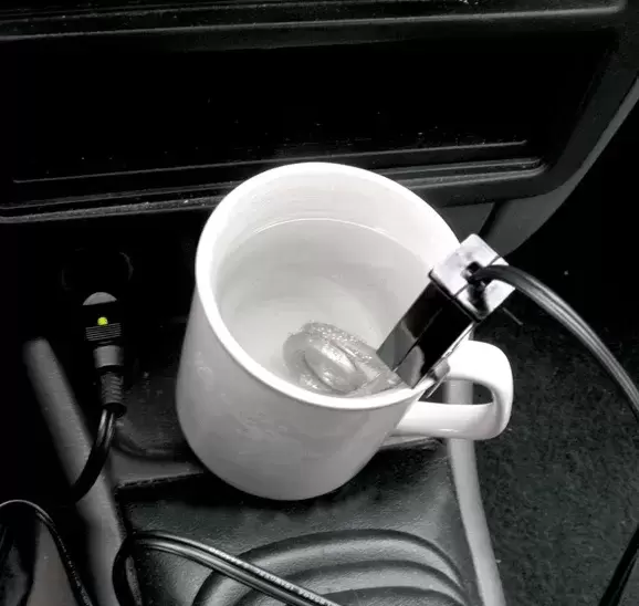 Résistance électrique idéale pour chauffer ou faire bouillir de l'eau n'importe où, fonctionnement depuis l'allume-cigare du véhicule, 12V avec une puissance de 120W.