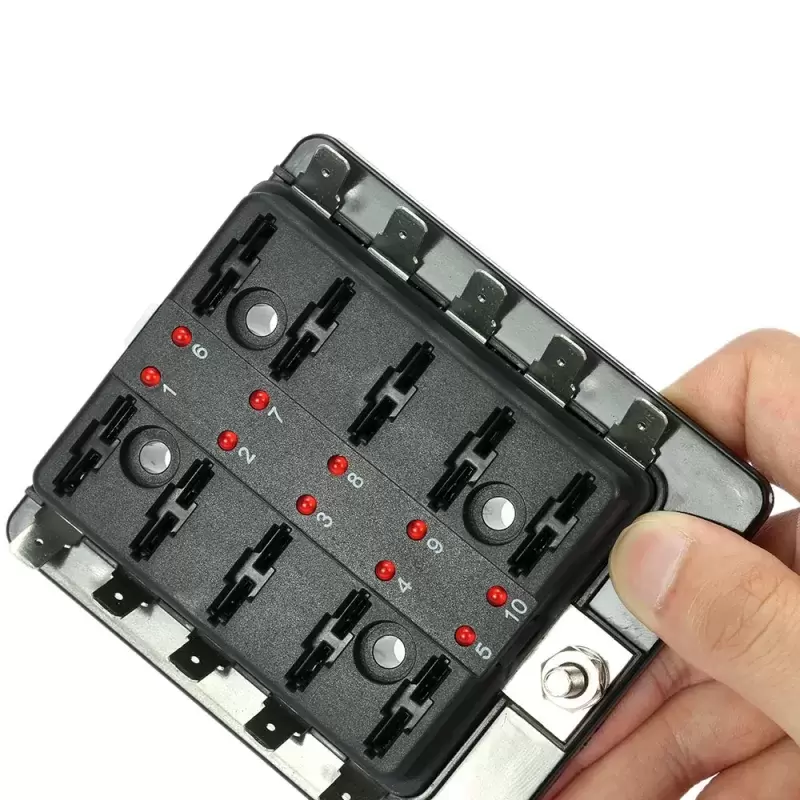 Coffret 10 fusibles avec 1 seule entrée positive caravane camping-car camping-car