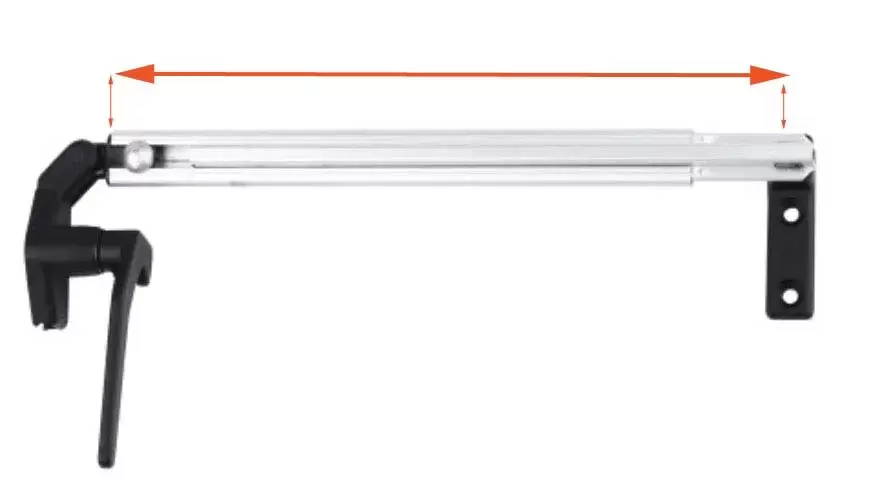 *La mesure est prise avec le compas fermé et exactement à l'endroit indiqué par les flèches sur la photo, depuis le début de l'aluminium où se trouve la poignée de fermeture jusqu'au centre du trou du support d'ancrage au cadre.