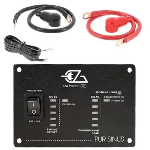 Convertisseur PUR SINUS EZA 12V vers 230V 500W pour connecter vos appareils électriques, domestiques, audio... dans votre camping-car, caravane, fourgon en toute sécurité.