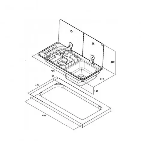 Cuisinière 2 feux et évier Can FL1401 pour caravanes, camping-cars et camping-car. - Réf.70545