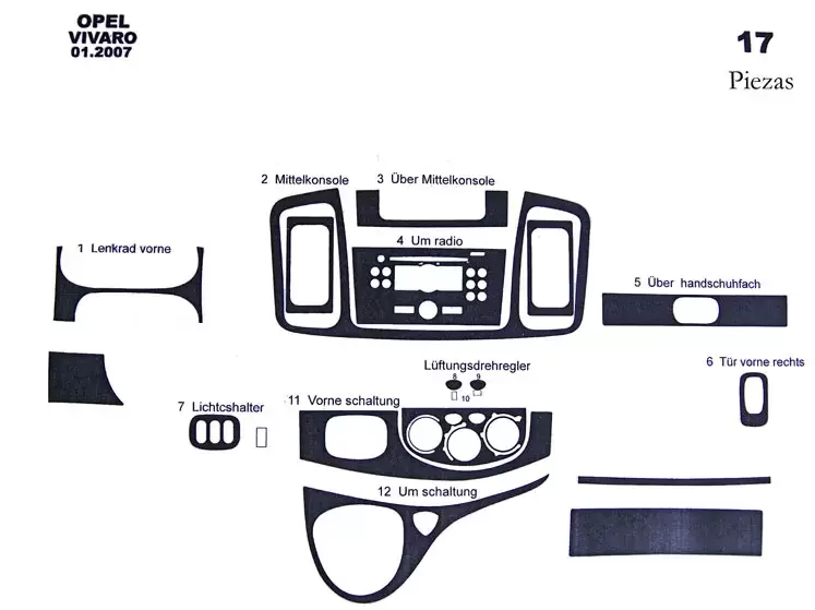 Déc. tableau de bord camping-car Opel Vivaro 01/2007 17 pièces