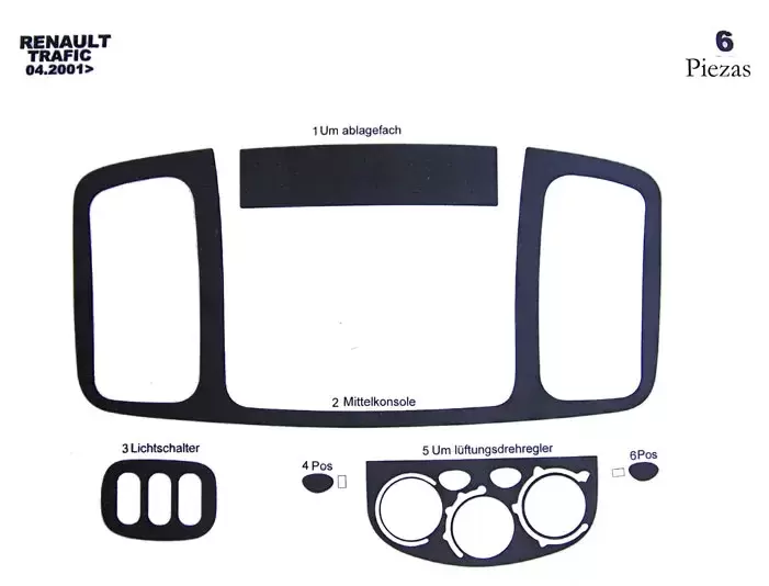 Kit décoration tableau de bord pour Renault Trafic à partir d'avril 2001.