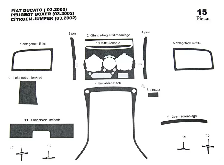 Déc. tableau de bord Fiat Ducato camping-car 03.2002> 15 pcs argent