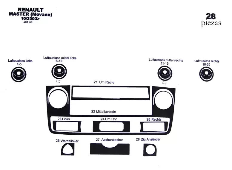 Kit décoration tableau de bord Renault Master à partir d'octobre 2003.