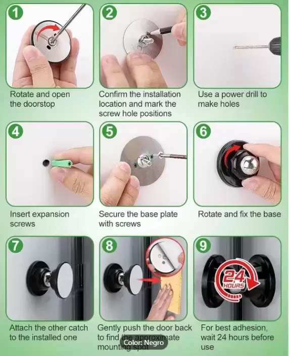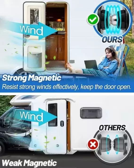 Retenedor de puerta redondo negro con bola magnético para caravanas, autocaravanas y camper.