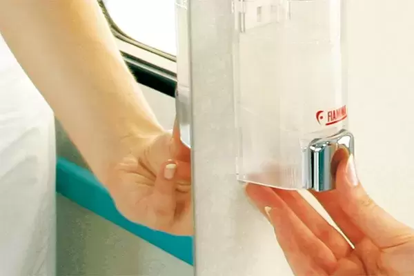 Distributeur de savon ou shampoing Fiamma idéal pour nos caravanes ou camping-cars