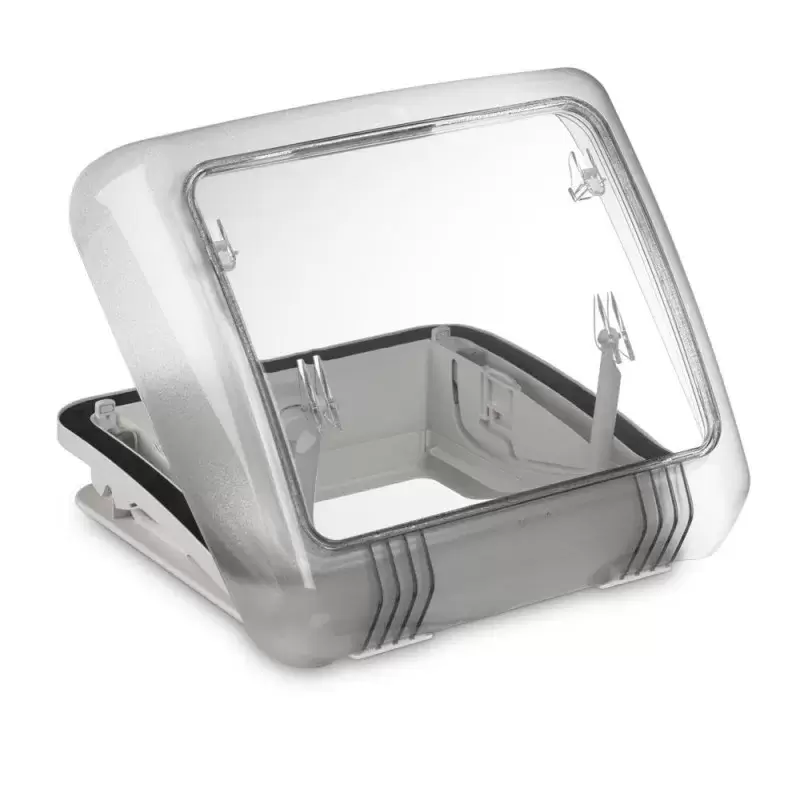 Puits de lumière Dometic Micro Heki 28x28 avec moustiquaire et ventilation forcée pour caravanes, camping-cars et camping-cars.