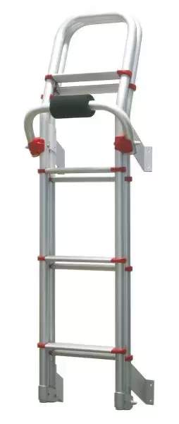 Échelle pliante en aluminium pour l'arrière d'une caravane ou d'un camping-car pour accéder au toit du véhicule avec un support caoutchouté pour une zone déroulante