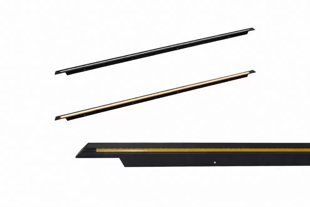 Fabricación en metal de aluminio anodizado en color negro con la luz incrustada en el mismo.