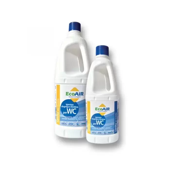 Liquide écologique pour l'hygiène des eaux usées des WC chimiques des camping-cars, caravanes, bateaux, bus, avions et de toutes les installations sanitaires non directement raccordées au réseau d'assainissement.