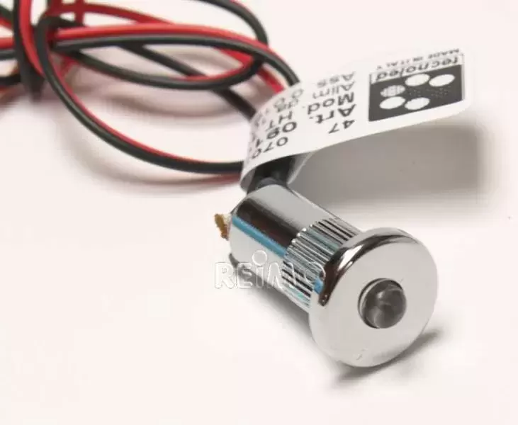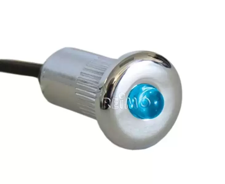 Dimensions : Ø15 x L25mm. Acier chromé. 10-14,4 V CC, 0,2 W. LED bleue.