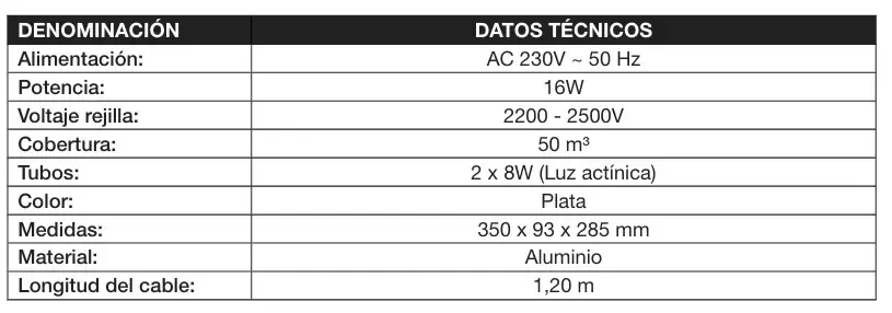 Exterminador electrónico de insectos voladores AC 230V, 2X8W, camping caravaning y overland 4x4.