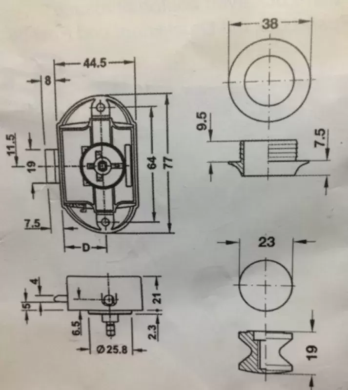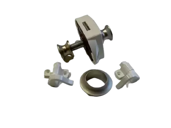 Fermoir poussoir avec rosace et mécanisme en blanc et argent satiné, mesures sur photo jointe.