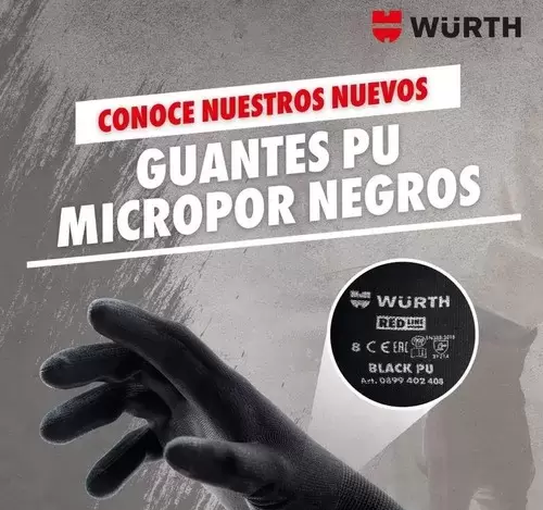 Gants WURTH T9 noirs en PU microporeux, paquet de 12 paires.