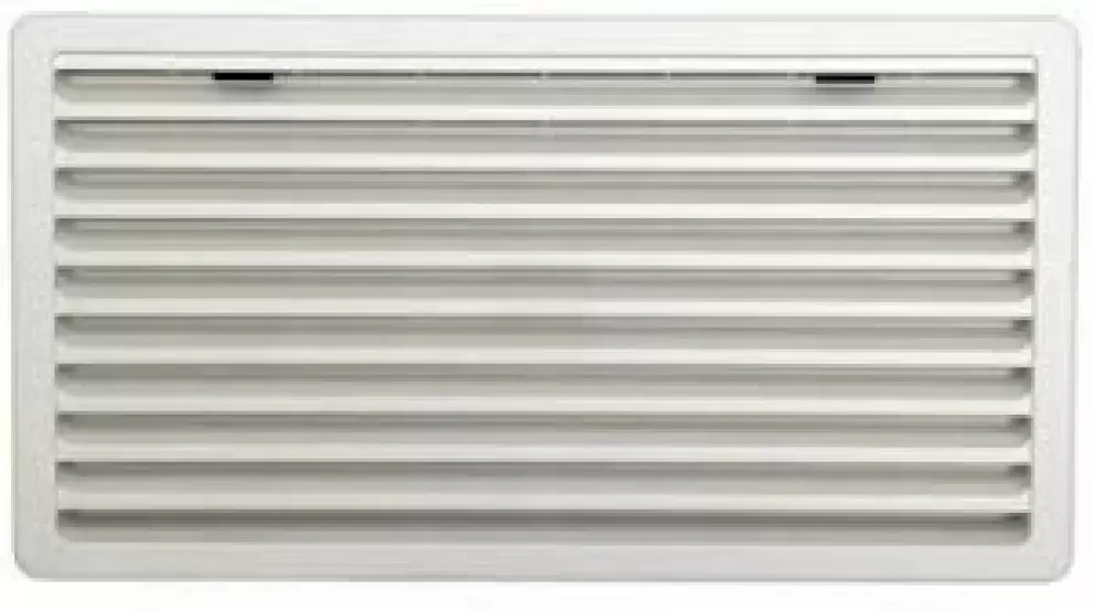 Grille extérieure pour réfrigérateur de marque Thetford de couleur gris très clair.