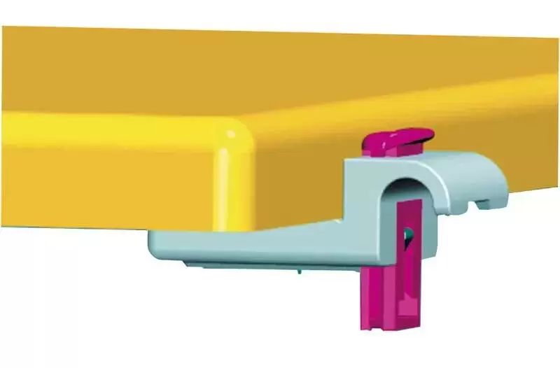 Avec le rail coulissant de table Quick Clip, vous pouvez facilement déplacer ou déclipser la table en appuyant sur un bouton.