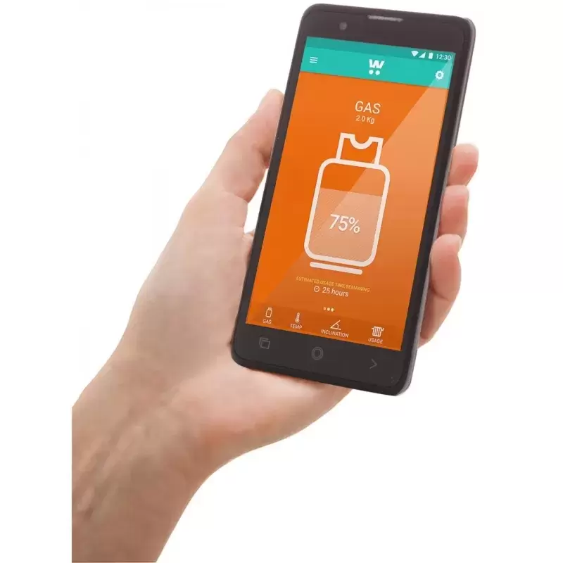 L'appareil électronique W8 GASCONTROL mesure le niveau de remplissage des bouteilles de gaz et le transmet via Bluetooth à un smartphone ou une tablette fonctionnant sous la technologie Android ou iOS. En raison de sa très faible hauteur, le W8 GASCONTROL peut être utilisé