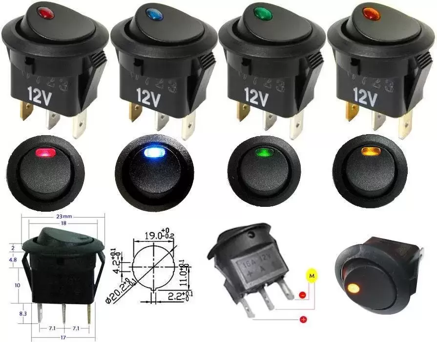Interrupteur rond avec led multi fonctions caravane camping car camping car.
