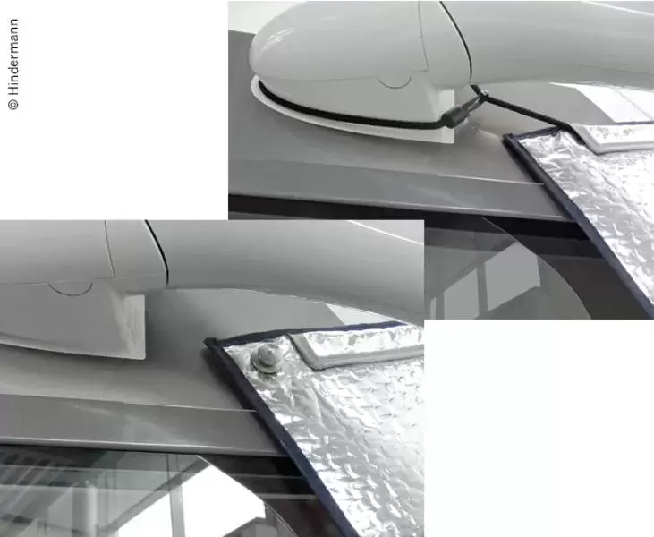 Il est fourni comme on le voit sur la photo, il ne recouvre que la partie avant et se fixe au camping-car grâce aux élastiques et crochets fournis, cette référence ne fournit pas les fermoirs métalliques fixés sur une des photos.