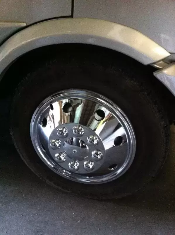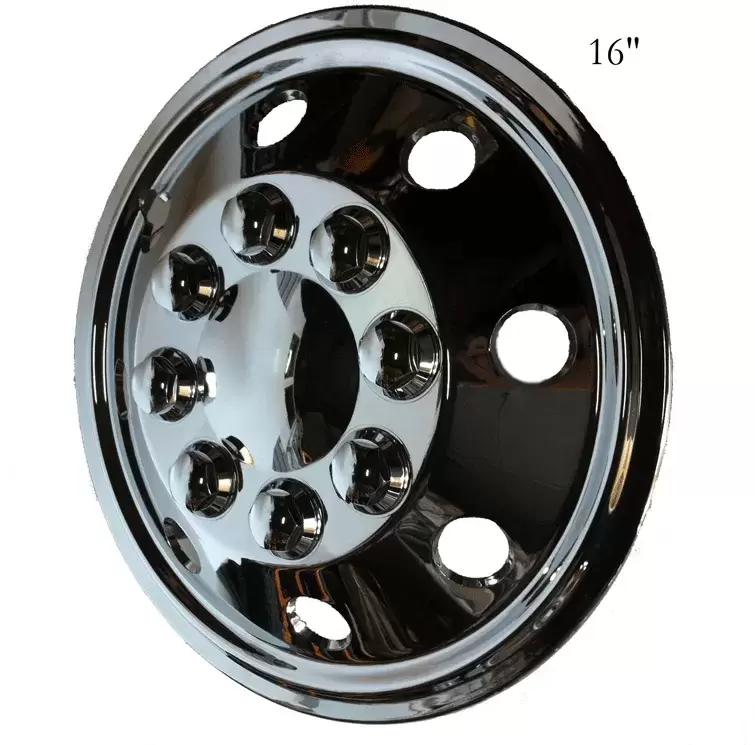 Quatre enjoliveurs de camping-car pour jantes de 16" avec une construction en plastique robuste et une finition chromée.