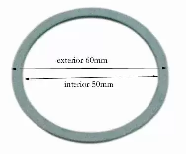 Dimensions : extérieur 60 mm, intérieur 50 mm, épaisseur 1 mm.