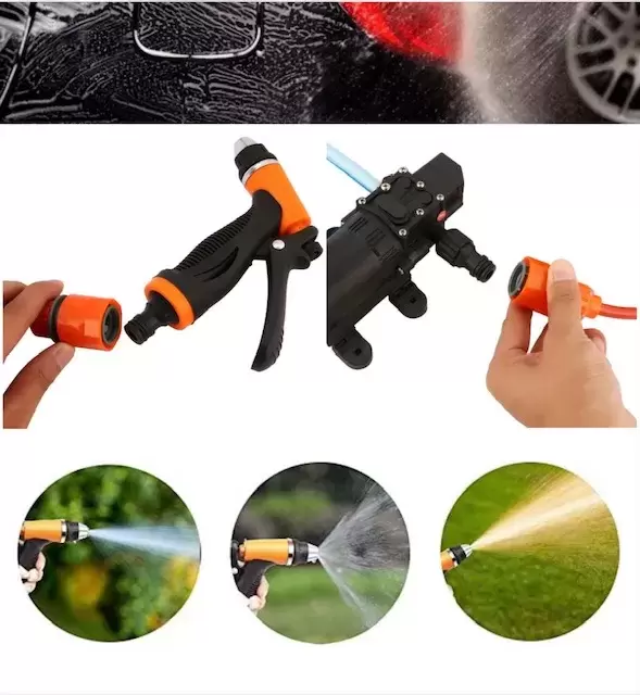 Ce kit se connecte à l'allume-cigare de la voiture et avec une simple bouteille ou un seau, il est alimenté en eau et permet de l'injecter sous pression avec différents types de débit allant du spray au jet fin.