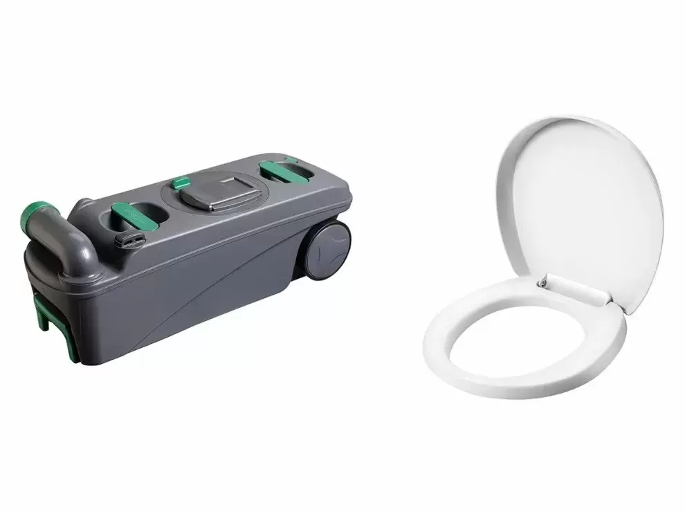 Thetford C500 set Fresh-up es un set compuesto por el asiento de inodoro con tapa y el depósito de almacenamiento con ruedas.