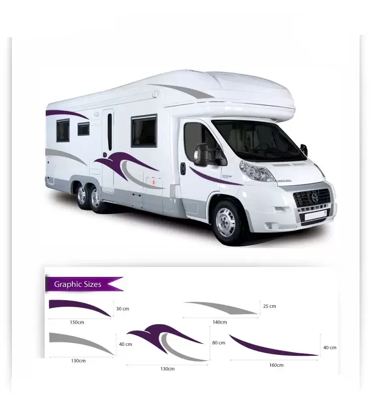 Kit d'autocollants pour la décoration des camping-cars composé de 12 pièces, 6 unités pour chaque côté.
