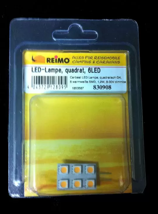 Lampe led carrée composée de 6 led, G4, 1.2W, 8-3cv.