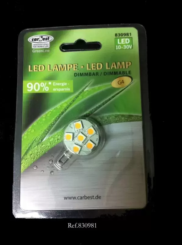 Lampe à 6 leds, G4, 1.2W, 23mm de diamètre, 87 lumen et broches de 10mm.