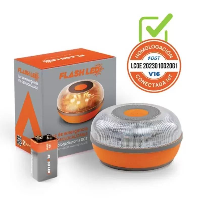 Lampe de secours Flash Led V16 géolocalisable avec connectique incluse jusqu'à 2038 + étui de protection CADEAU.